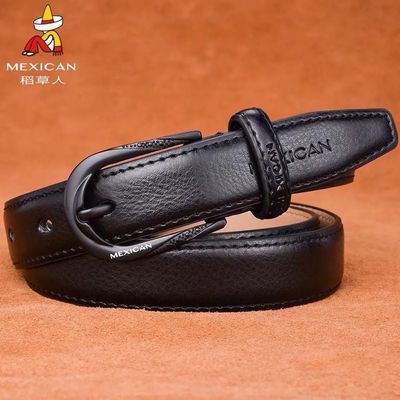 稻草人女士真皮腰带细皮带牛皮软裤带时尚韩版ins风针扣百搭皮带