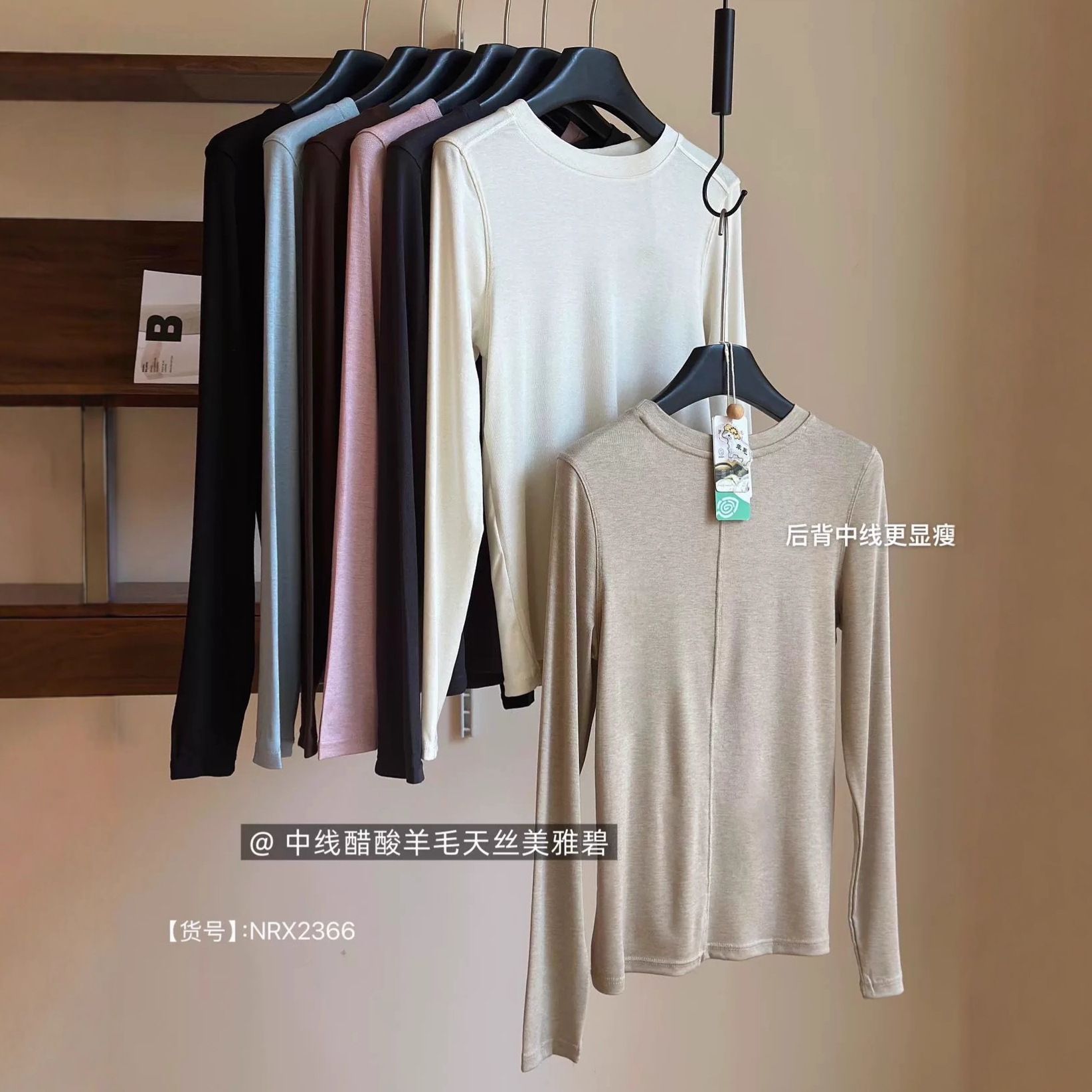炒 醋酸羊毛天丝中线圆领正肩打底衫女秋季显瘦打底长袖T恤