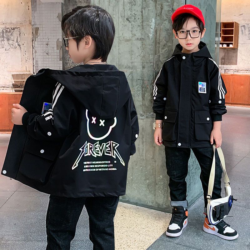 男童外套2024年春款风衣中大童韩版帅气中长款儿童带帽外套洋气潮