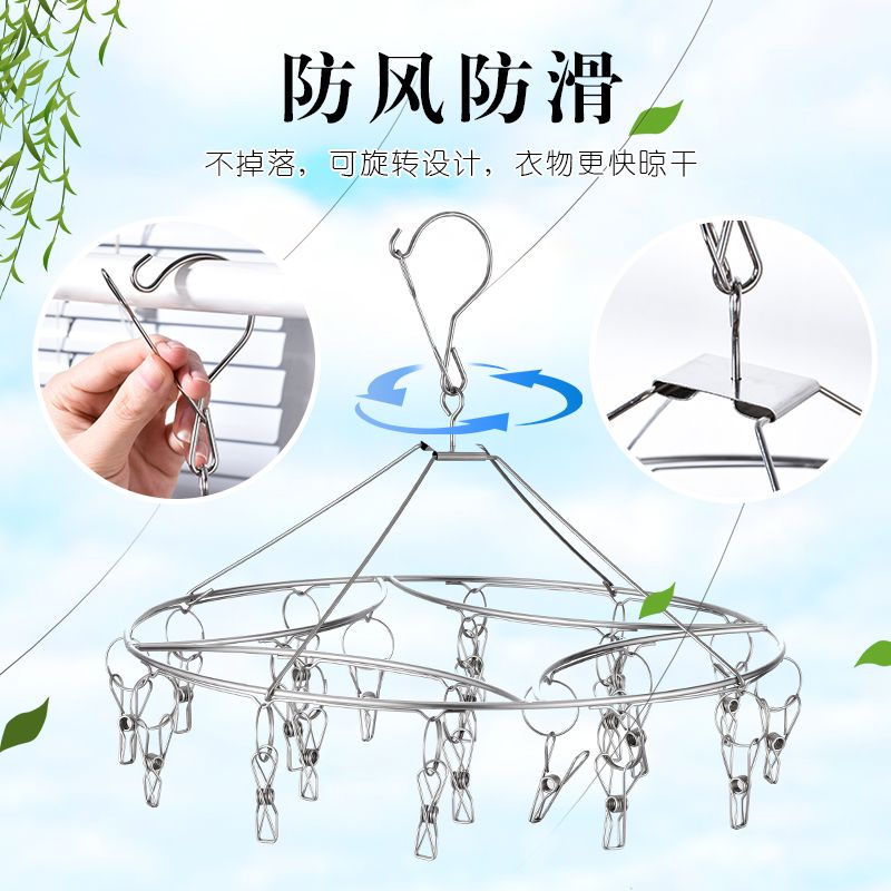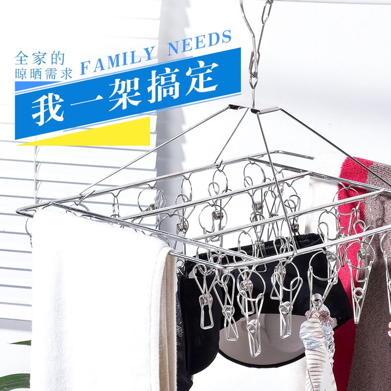 加粗不锈钢夹子袜架防风晾衣架晒袜子内衣挂钩架子多功能儿童袜夹