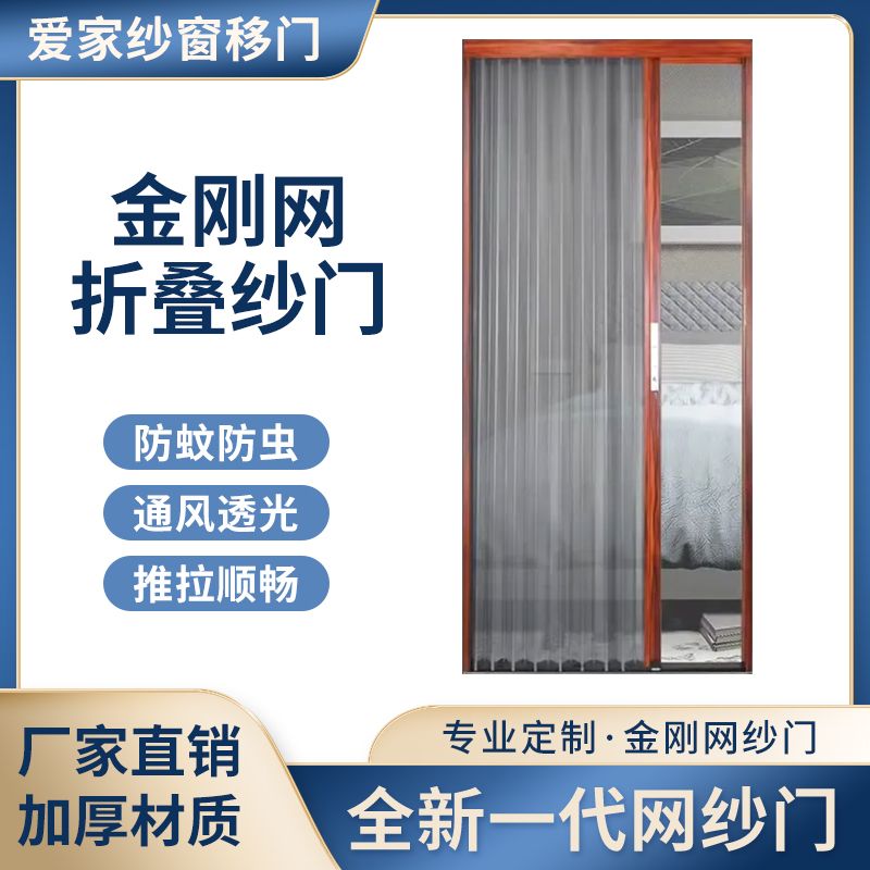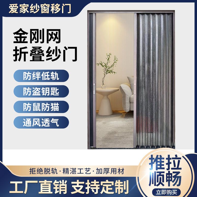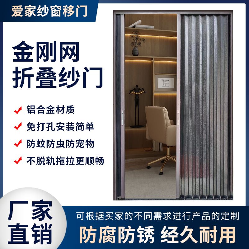 金刚网隐形折叠纱门定制铝板网推拉门可上锁防盗防蚊虫纱网折叠门