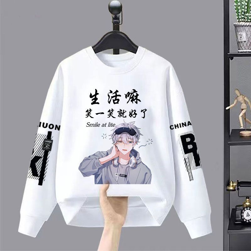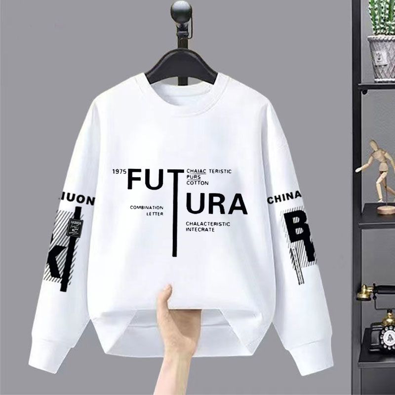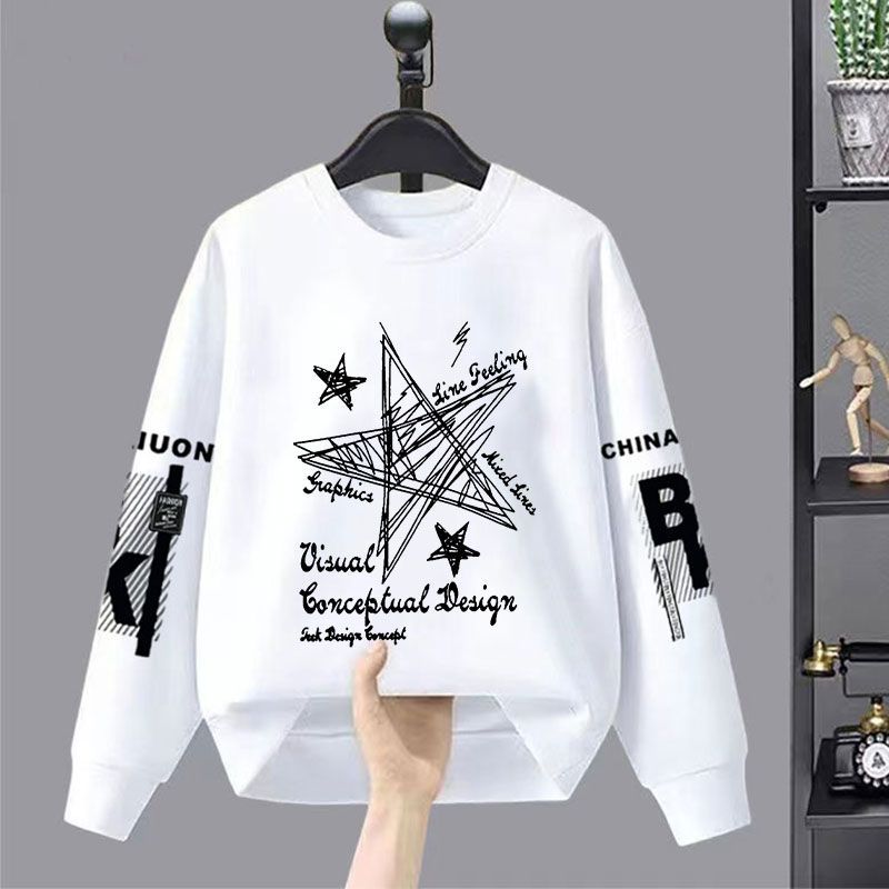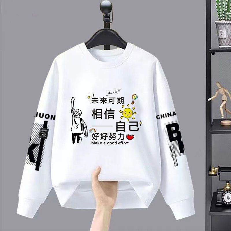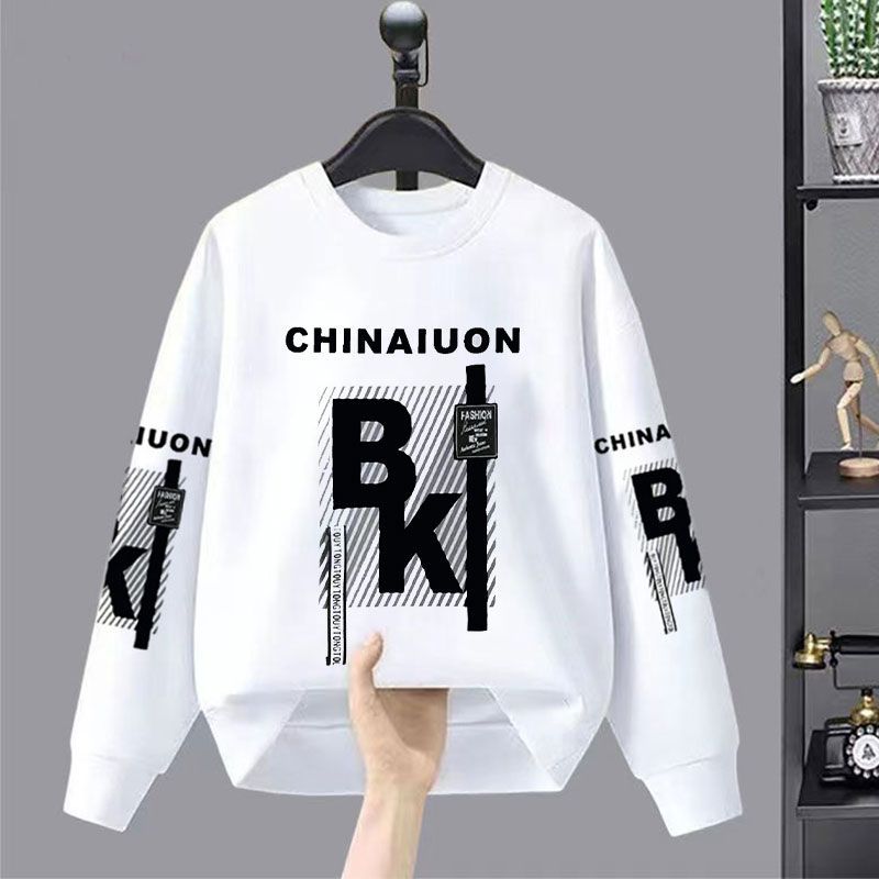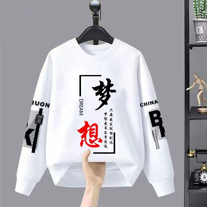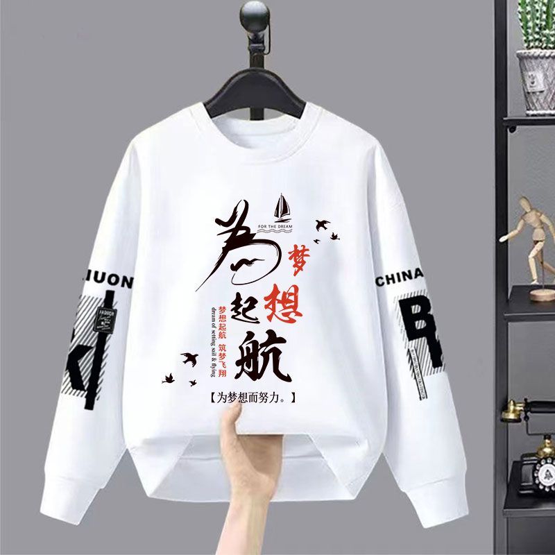 春秋新款薄款卫衣圆领长袖男士宽松青少年学生潮流男装上衣打底衫