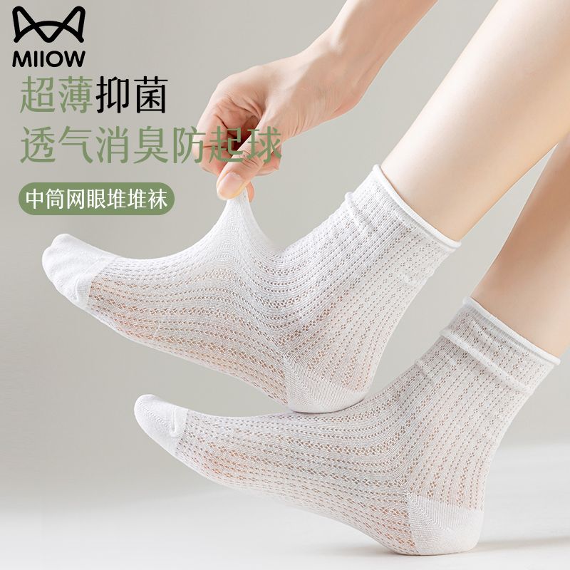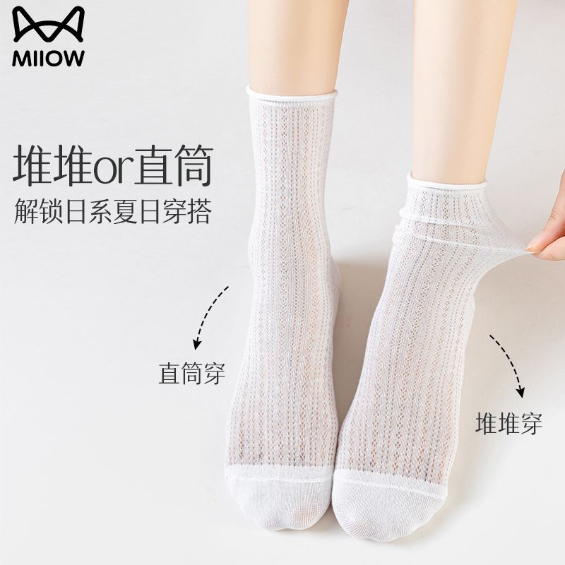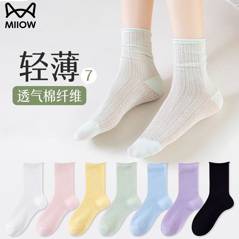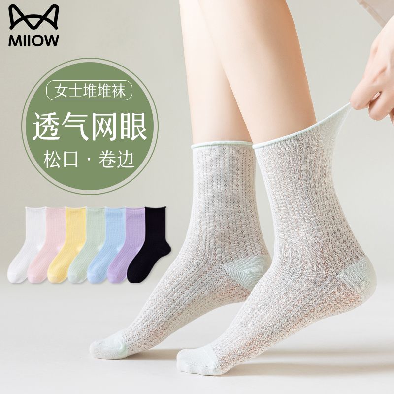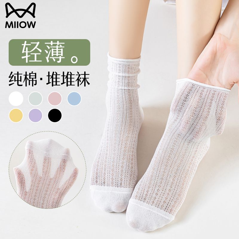 猫人袜子女中筒袜春夏季纯色轻薄透气甜美堆堆袜简约百搭休闲女袜