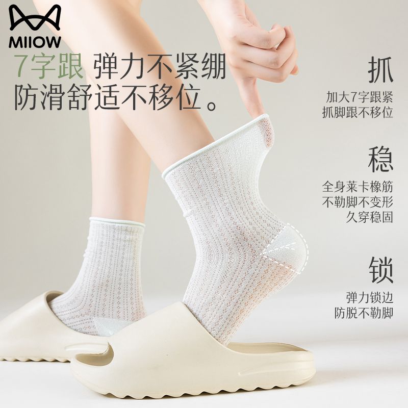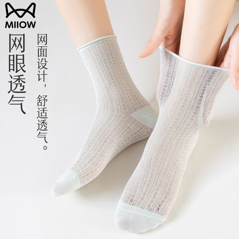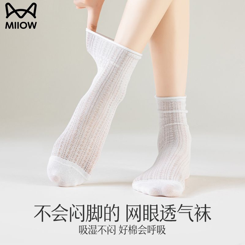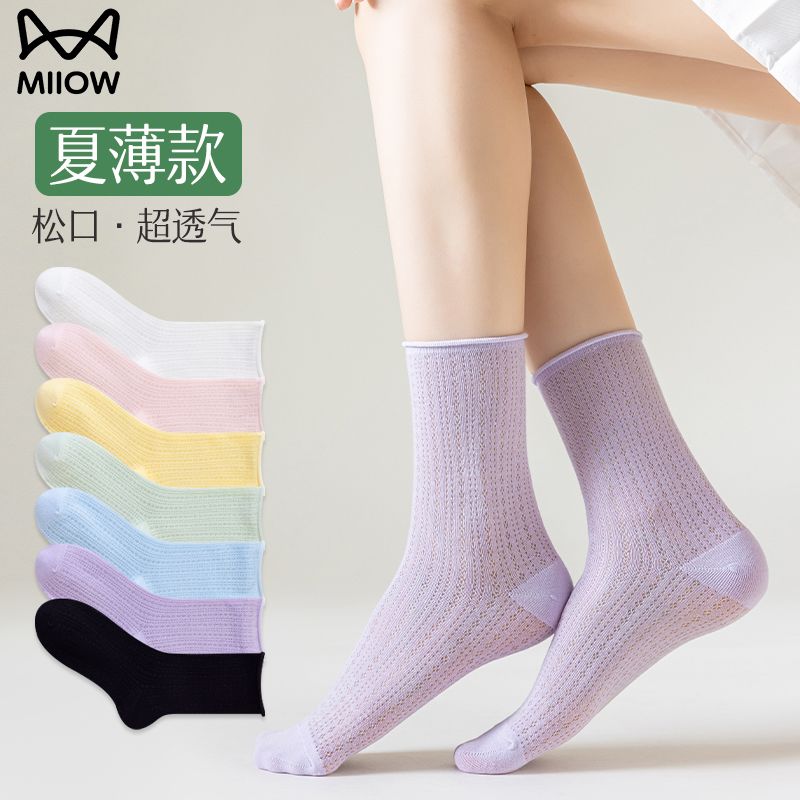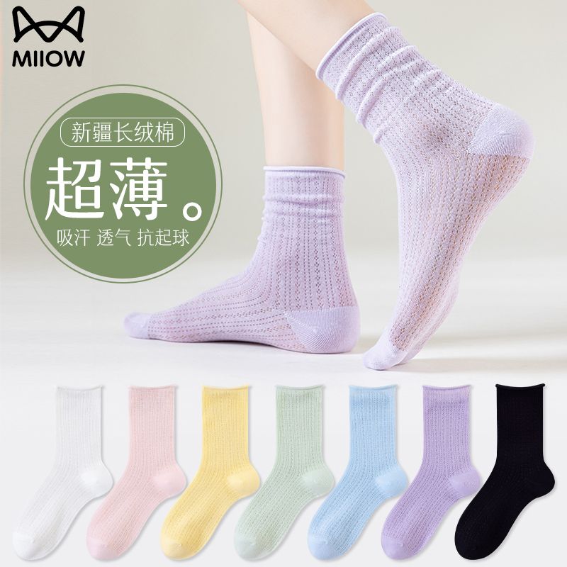 猫人袜子女中筒袜春夏季纯色轻薄透气甜美堆堆袜简约百搭休闲女袜