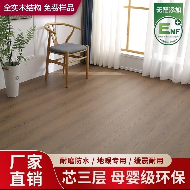 ENF新三层实木复合地板地暖地板奶油风原木色环保耐磨家用锁扣