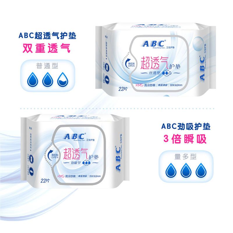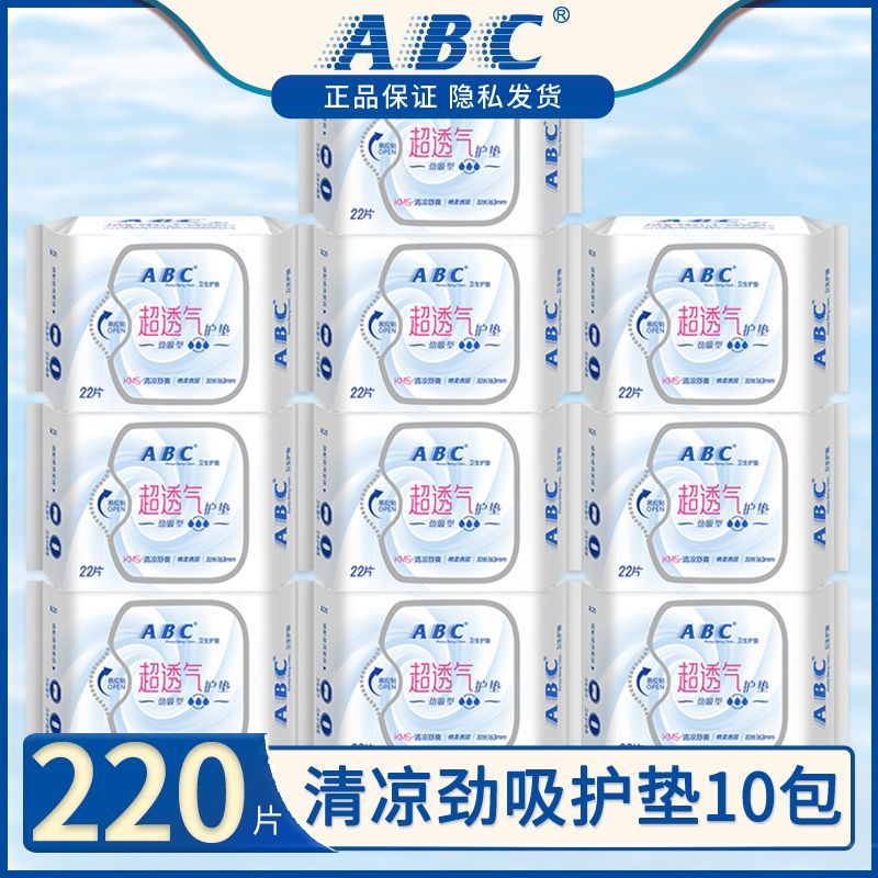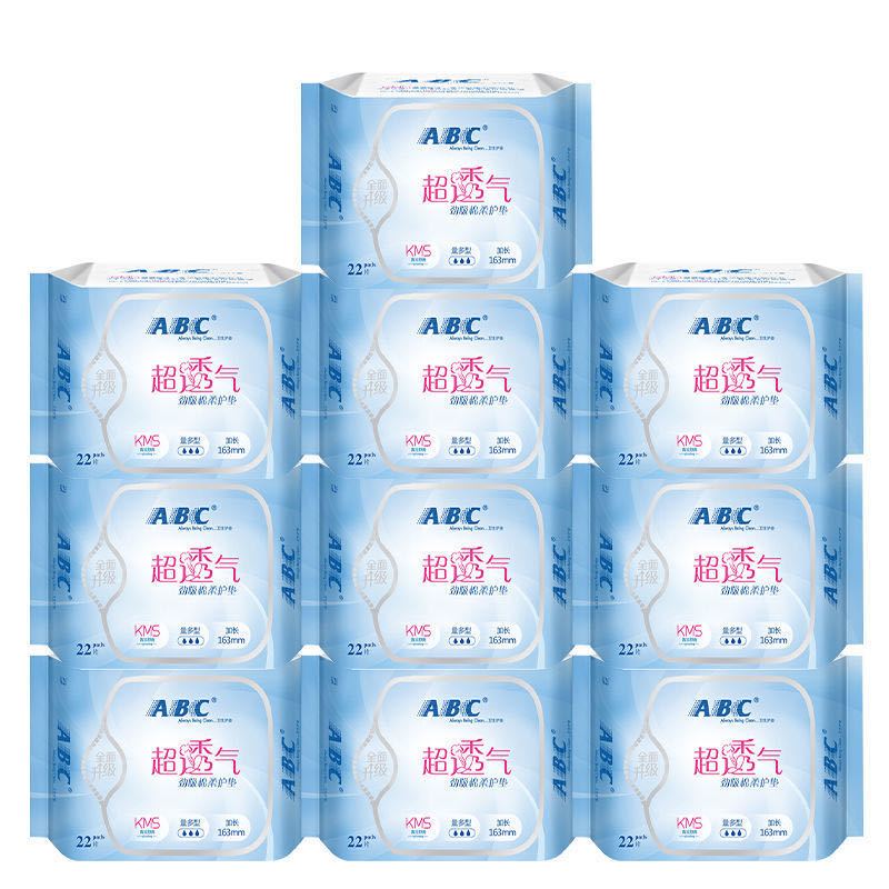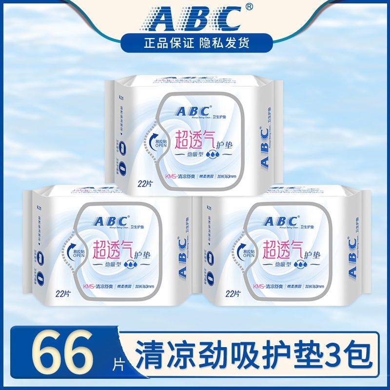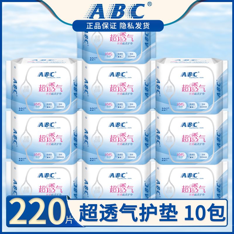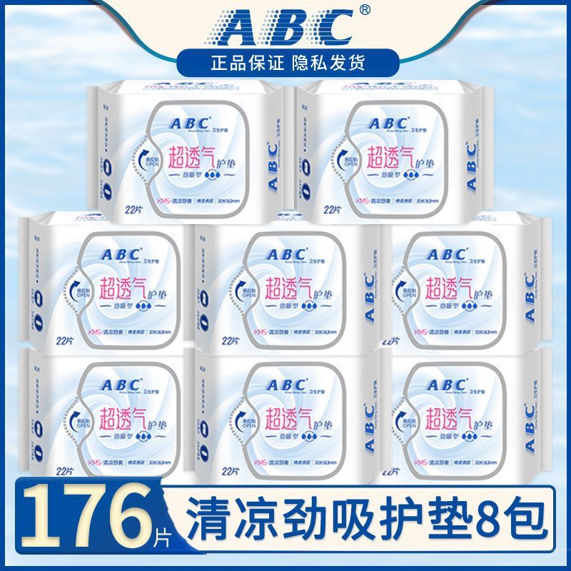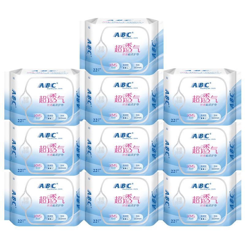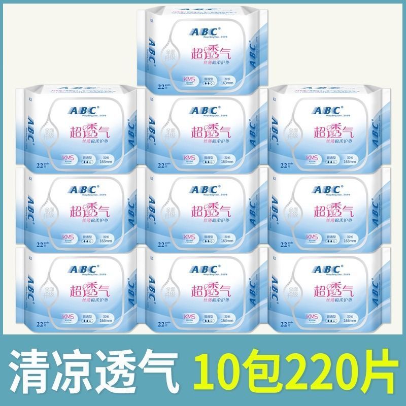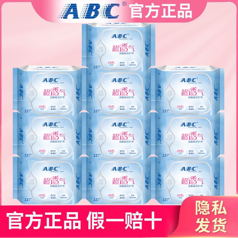 ABC卫生巾护垫超透气163mm薄荷清凉劲吸纯棉柔正品一整箱批发正品