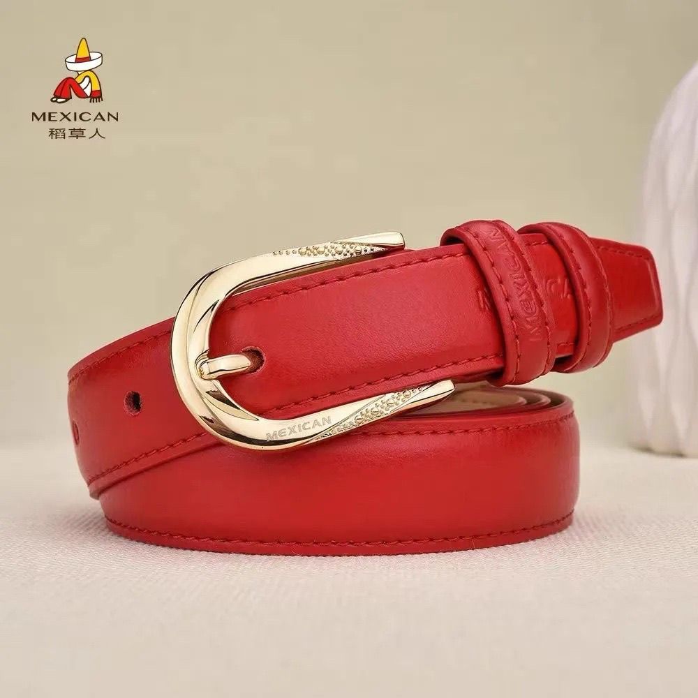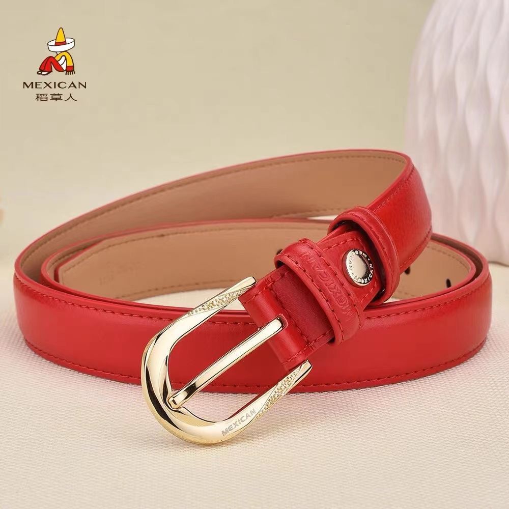 稻草人女士真皮腰带细皮带牛皮软裤带时尚韩版ins风针扣百搭皮带