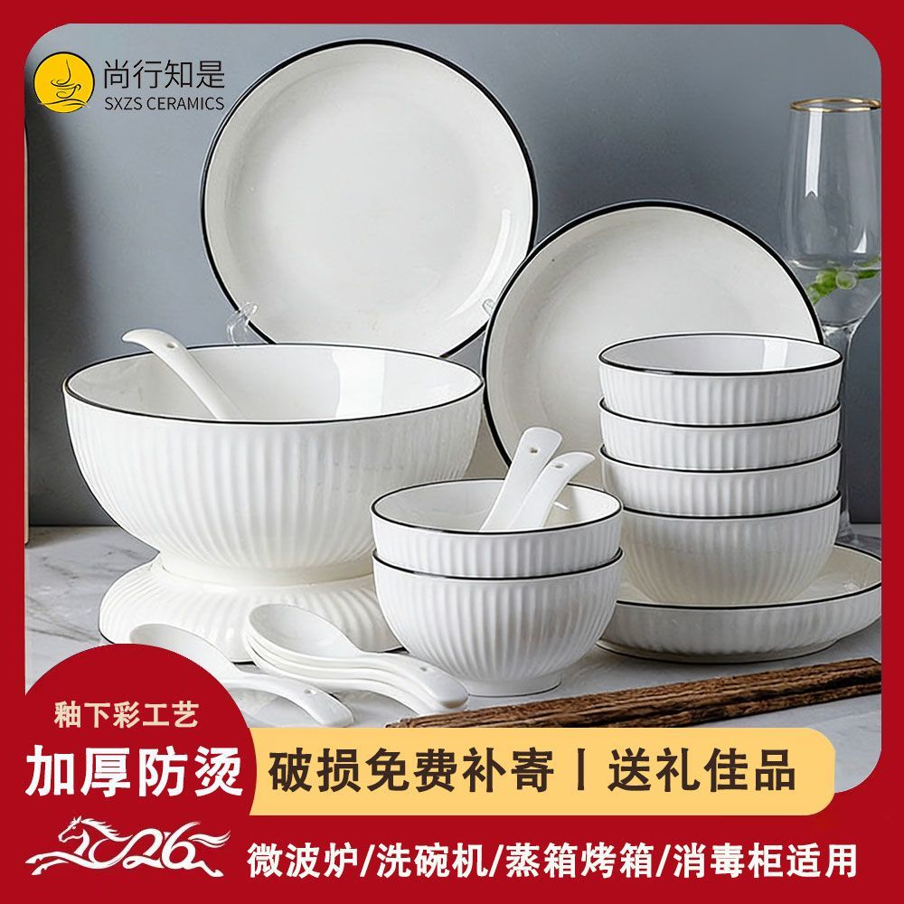 釉下彩特价陶瓷碗盘碟餐具套装家用面汤碗景德镇瓷器碗筷吃饭碗
